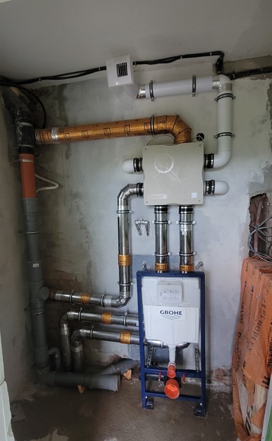 В последнее время заказчики больше прислушиваются к нашим аргументам и были реализованы более дешевые системы, также на компонентах Aereco, но рассчитанных на более высокое разрежение для вытяжных устройств (базово 100 Па). Пример реализации такой системы, с максимальной экономией, вентилятор, вытяжные устройства, приточные клапана с Авито (вентилятор Aereco V5S б/у, остальное почти всё новое)