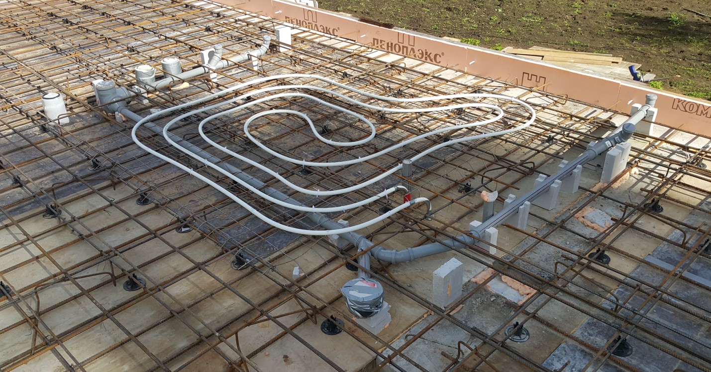 По этой причине выработали другую концепцию, в которой теплому полу отводится роль фонового, но основного источника тепла. На смесительном узле устанавливается привод-контроллер с погодозависимым управлением Esbe 90C, который настраивается так что бы недотапливать помещения, при этом он меняет температуру теплоносителя в зависимости от погодных условий – основного фактора динамики теплопотерь. Также применяется ещё ряд т.н. «лайфхаков» собственной разработки. Стяжка, в которую укладывается труба теплого пола, должна быть максимально пластичной, в идеале – бетон, толщиной не менее 80 мм. Шаг укладки трубы диаметром 20 мм (уменьшение гидравлического сопротивления по сравнению с трубой 16 мм и увеличение площади теплообмена трубы со стяжкой) выполняется в 2 раза больше традиционного, например, при укладке змейкой 30 см. За счет значительно большей, чем у полусухой стяжки, теплопроводности бетона градиент температуры на поверхности пола практически незаметен. Для реализации необходимого теплового потока температура теплоносителя устанавливается выше традиционной. Это позволяет при соблюдении нормативов (температура на поверхности пола не более 28 градусов) выполнить по настоящему эффективные зоны с повышенной температурой за счет уменьшения шага укладки и применения двух армирующих сеток, под и над трубами ТП, для лучшей теплопередачи – около входной двери, окон в пол (лучше и дешевле, чем внутрипольные конвекторы). Другой «лайфхак» — на этапе проектирования закладываются петли теплого пола приблизительно одинаковой длины. В этом случае отпадает необходимость значительно зажимать более короткие контура под гидравлическое сопротивление самой длинной петли, а соответственно, уменьшить гидравлическое сопротивление системы в целом, снизив нагрузку на циркуляционный насос. Целесообразно применять циркуляционные насосы с частотным управлением. Такие насосы даже на постоянной скорости экономят потребление энергии по сравнению с насосами UPS.